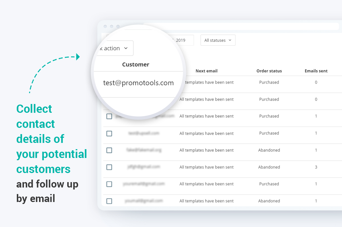 The Abandoned Cart add-on collects contact details of site visitors who were a step away from completing their purchase on your store, allowing you to craft snazzy, attractive pitches to get them to come back to finish their order.