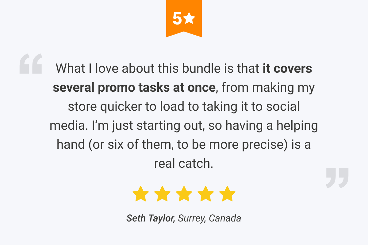 Combining 6 purchase-oriented tools in one exclusive set, the Sellvia Add-on Bundle is a winning solution for boosting your store’s online presence greatly – and making the most from every customer’s visit.