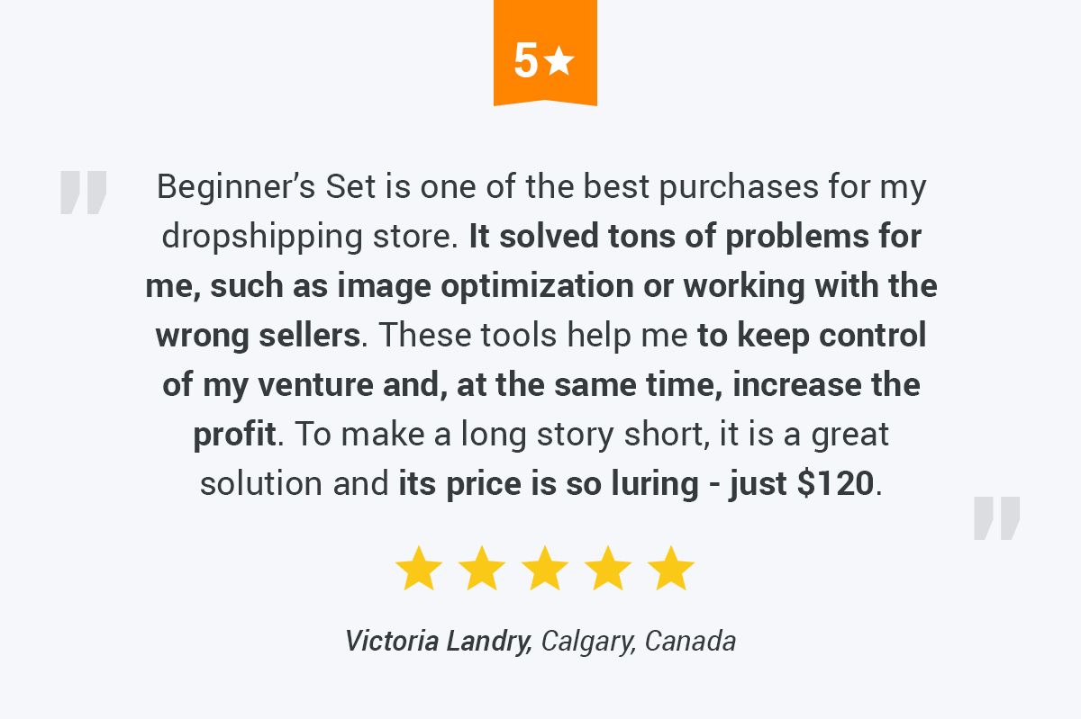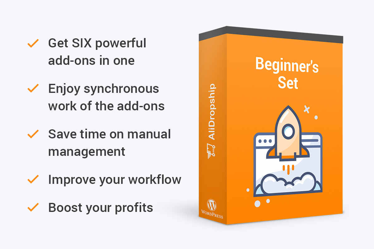 Are you new to dropshipping? This bundle was created especially for you! With the help of these six amazing add-ons, you can easily manage and drastically grow your store. Get everything you need to start earning money for only $120 instead of $172. Save big and skyrocket your business with the Beginner’s Set.
