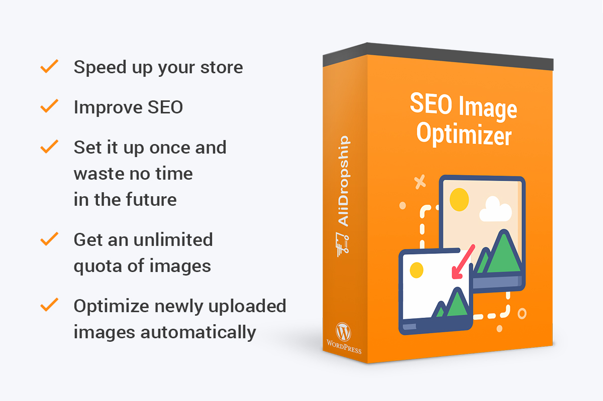 SEO Image Optimizer was designed especially to solve this problem. Using this simple but effective tool, you can optimize all images uploaded to your store in several clicks, add watermarks and ALT texts, and even compress them to speed up your website. Plus, activated once, this tool will automatically optimize all the new images uploaded.