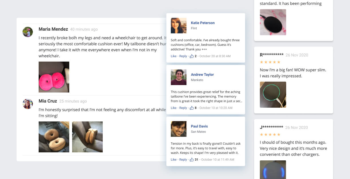 Nearly 90% of consumers trust online reviews as much as personal recommendations. They do a great job of convincing your prospective customers to make the final purchase decision. That’s why we put a great emphasis on social proof sections you can inspire trust with: blog comments, Facebook-style comments, and masonry-style reviews.