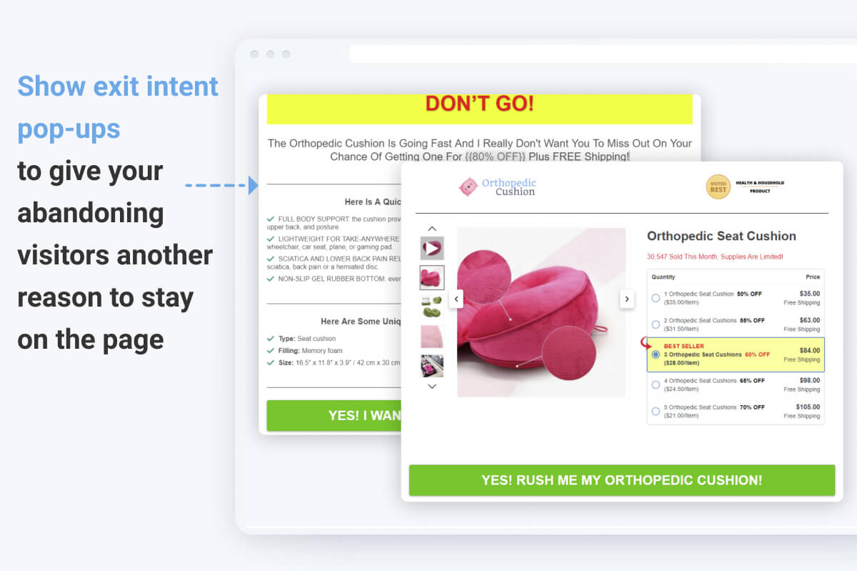 The pre-made templates offer effective exit-intent pop-ups that convert your bouncing traffic. The add-on detects when someone is about to leave the page and shows a pop-up window that restates your value propositions and gives your abandoning visitors another reason to stay on the page.