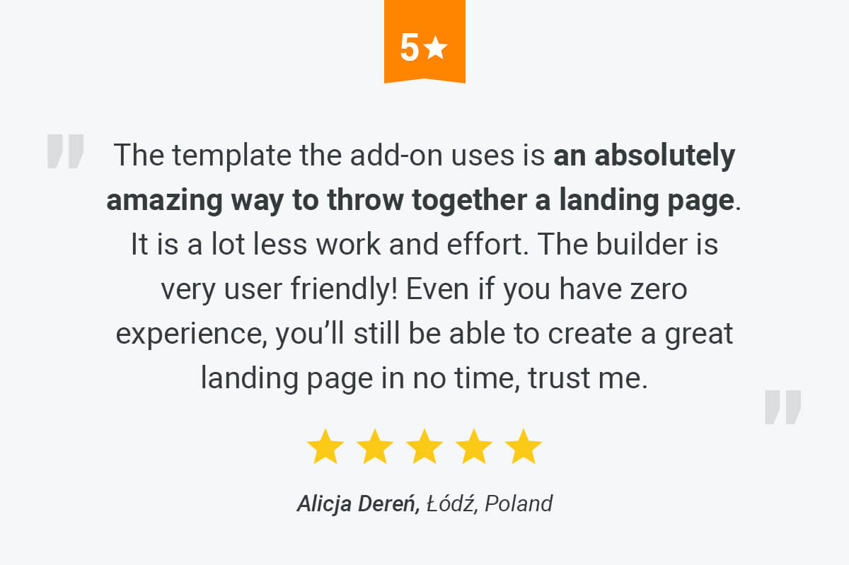 The best thing about the Landing Pages add-on is that you can create effective landing page all on your own. Thanks to the powerful drag-and-drop builder and the ready-made templates, you won’t have to hire a developer to craft a landing page of your dreams.