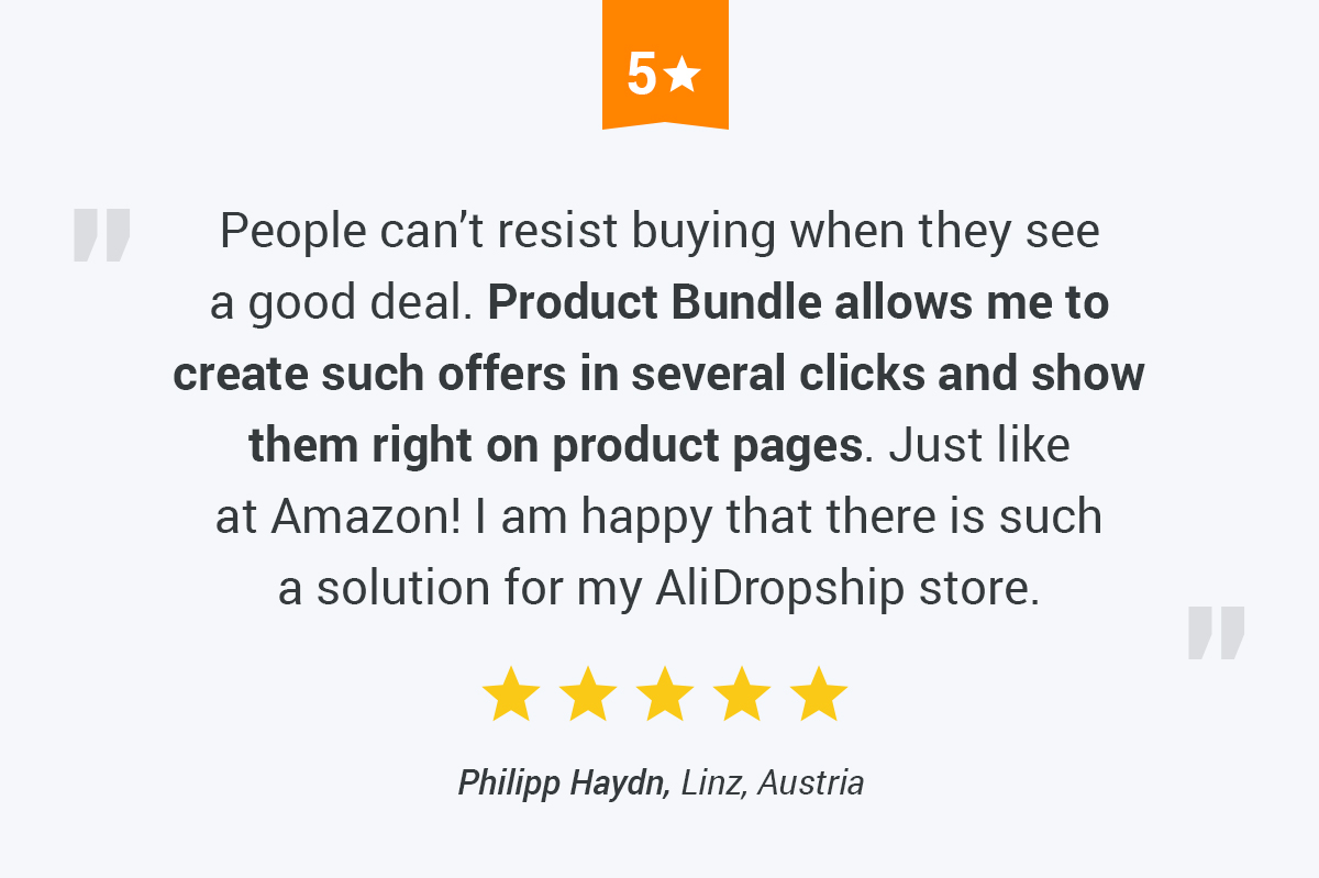 You’ll be astounded by the Product Bundle’s intelligent interface. Just plug in the tool and create your first bundle in one minute!