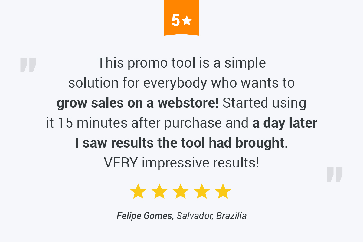 Discover an incredible way to win customer trust and motivation. The Recent Sales Pop-Up add-on automatically generates pop-up notifications about hot purchases from other shoppers. This exciting way of promoting items creates a fun shopping atmosphere while showcasing what is popular on your store.