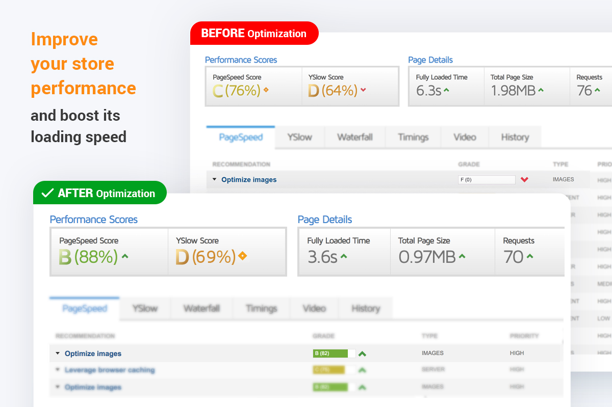 - Set it up once to boost your store performance, SEO ranking, and loading speed
