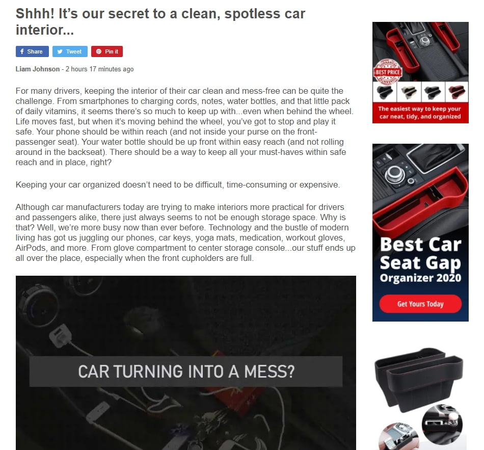 - A two-page funnel, with the first page containing an article and the second one containing the product details.