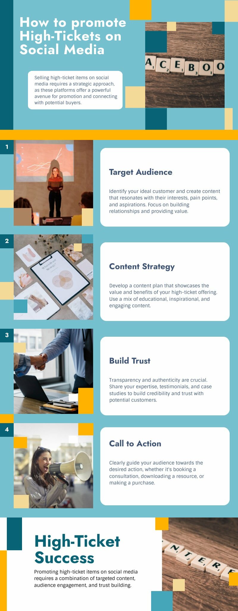 Engaging with your audience on social media by sharing high-quality images, videos, and customer testimonials can greatly increase your visibility. Running targeted social media ads can further extend your reach and attract high-ticket buyers.