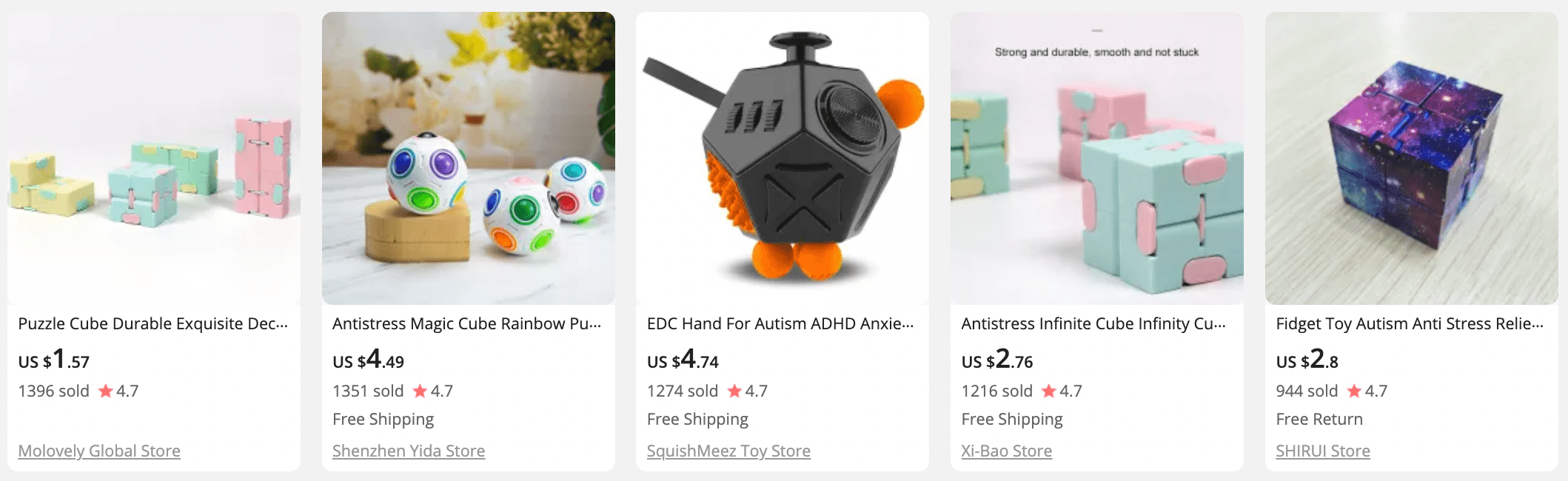 Stress-relieving tools come in all sizes and shapes. As they solve various user issues, they can be divided into several distinctive types (slimes, fidget toys, squeeze toys, etc.) with their own unique features. So, it’s up to you to decide what mental health products to sell.