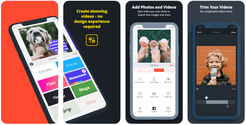 Step up your effects and style with a name brand app. Adobe Spark features professional-grade filters, effects, and more from a leading creative powerhouse.