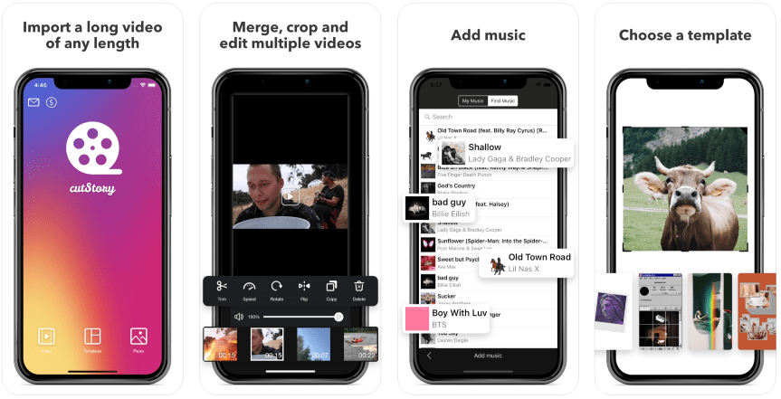 CutStory allows you to import video to cut to create multi-post Instagram Stories. Plus, add music, stickers, and text for a pop that captivates your followers and viewers.