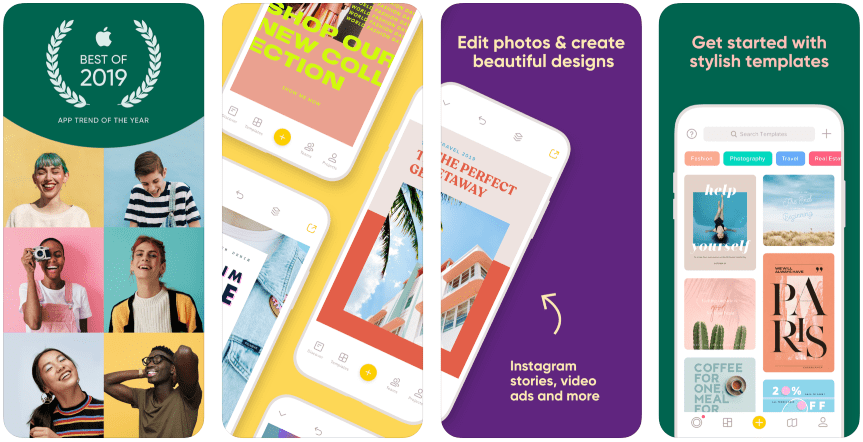 Boasting 60,000 free templates and 700+ font options, Canva is a leading photo editing tool that lets you create email templates, banners, social media posts – and Instagram Stories. The tool works for video as well.