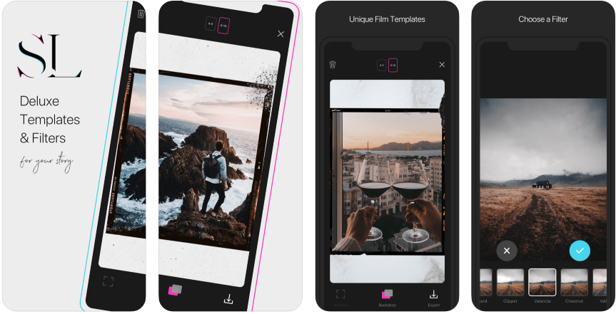 Want to showcase something new (or a fun company event) like a photo album or film reel? Storyluxe has got you covered with story templates stylized like polaroid snaps and film templates, in addition to a plethora of filters to customize your images.