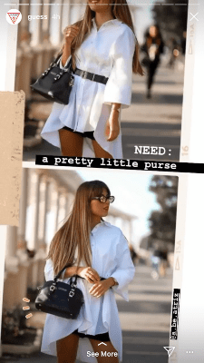 Showcase real users (or influencers) of your company’s products. Guess showcases two influencers to promote some of their clothing and bags. You can utilize your Instagram Stories as a way to shoutout personalities you’ve partnered with, or just give loyal customers some time to shine in the spotlight.