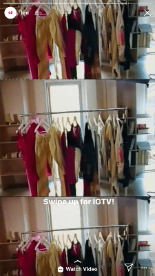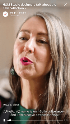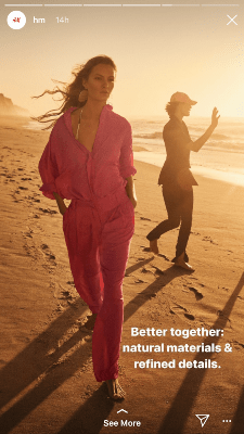If you’re launching a new product or promotional campaign, take a page from H&M’s book. The Swedish fast-fashion retailer recently launched a spring/summer collection for women. Showcasing crisp campaign images (as well as a fun video from the campaign shoot), the brand builds a cohesive message, and finishes off its series of Story posts with a stylized video screen that prompts viewers to an IGTV video that shares designer inspiration for the collection. A very solid hit, this move by H&M demonstrates how to use video and imagery (with some razzle and dazzle effects) to build up a campaign experience, leading up to longer-length video outside of Instagram Stories.