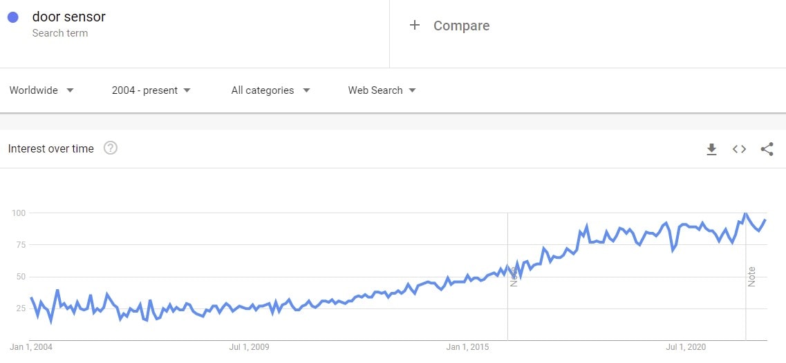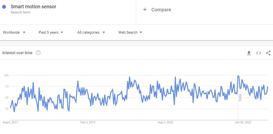 According to Google Trends, some 3-4 years ago the popularity of ‘smart motion sensor’ began to grow. And nowadays the interest to this kind of smart home devices is enough to think of adding this product to your product range.