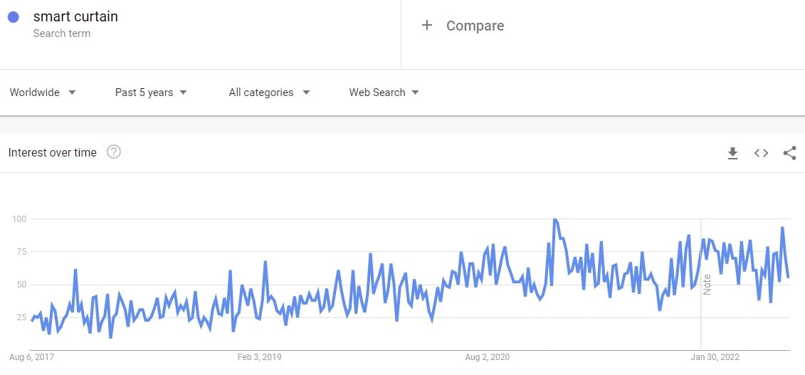 If you look at what Google Trends thinks of smart curtain, you will find that the popularity of ‘smart curtain’ search request is growing steadily. Well, what else do you need as a dropshipping store owner?