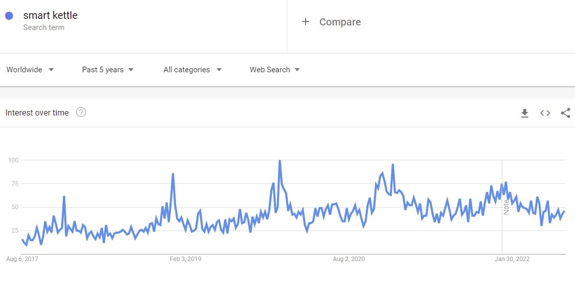 Now let’s look at what Google Trends can tell us about this product. Well, we can see that despite relatively high prices, smart kettles are in a strong demand on the Internet. So, is it worth adding to our product list?