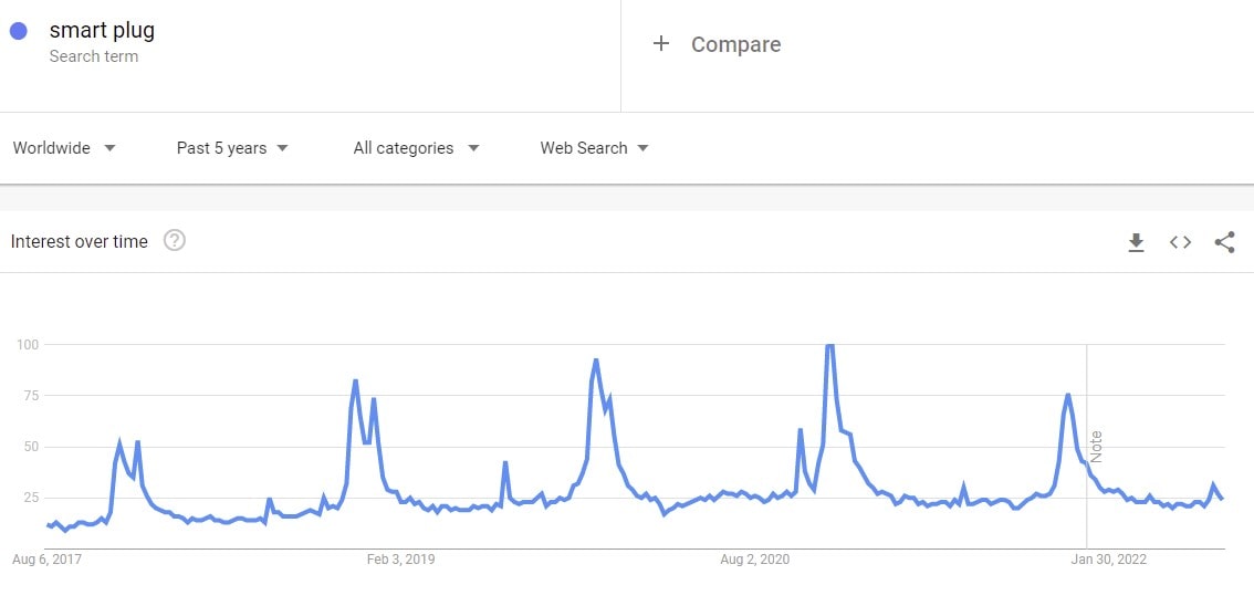 As we can see, the popularity of ‘smart plug’ search request has grown several times over the past three years. That’s why we think there is no doubt about adding this product to your online store!