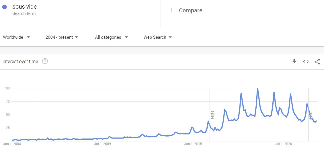 If you still have doubts about whether to sell this kind of a precision cooker in your online store, just look at what Google trends can tell us about it. So you can see that sous vide precision cookers are becoming more and more popular, and with perilous speed!