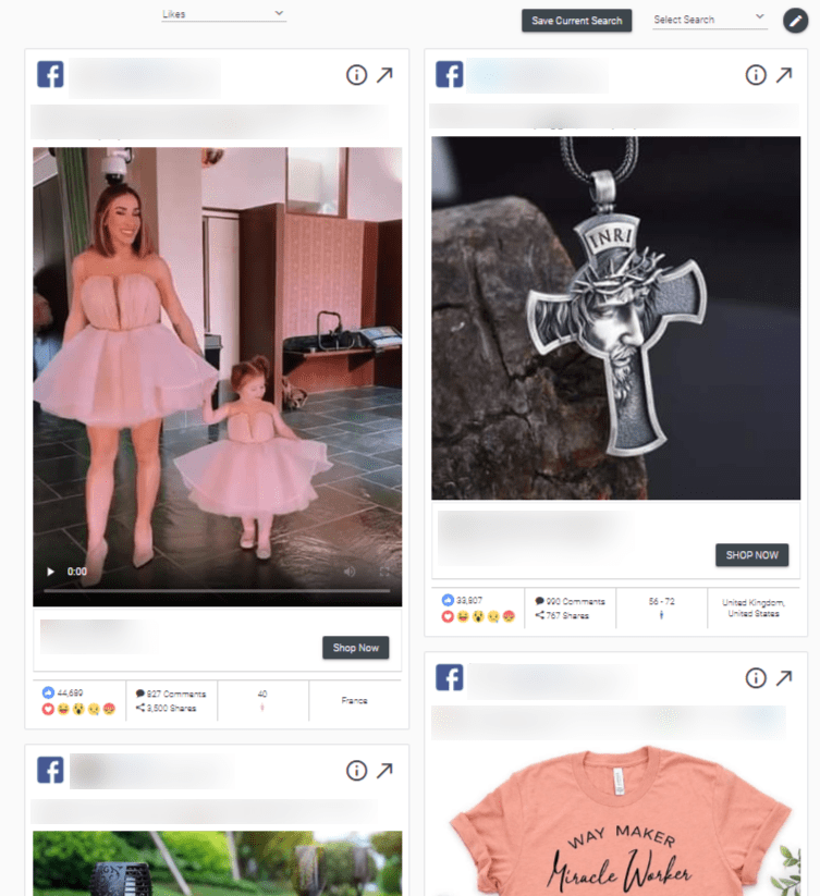 AdSpy is a database that allows you to search and look through ads published on Facebook and Instagram. You can also click on them to view the original social media post.