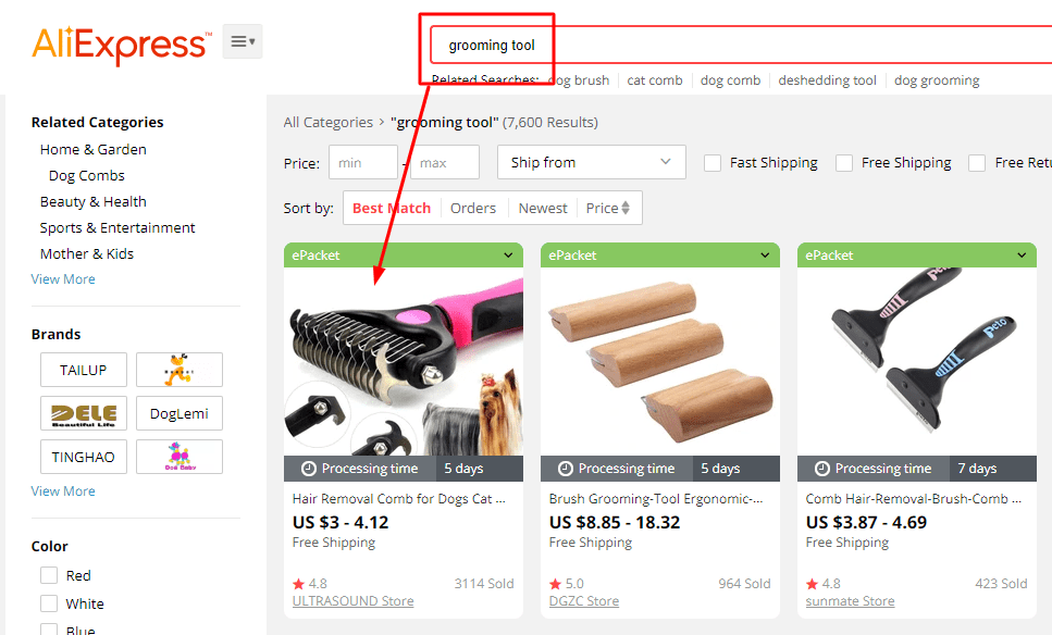 Finding the product on AliExpress