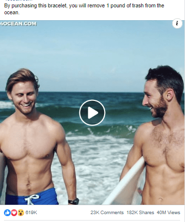 Let’s take the one below. Here, you can see a video telling how buying the bracelet will help to save the ocean. In fact, many people are concerned about the state of the environment. That’s why they’re likely to watch it and make a purchase.