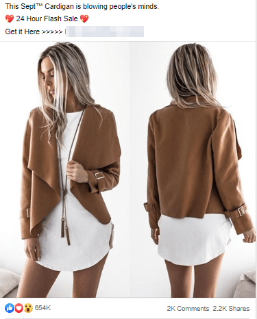 This Facebook ad promoting a cardigan has got 654k likes, 2.2k comments and 2.2 shares. So, what makes this creative so successful?