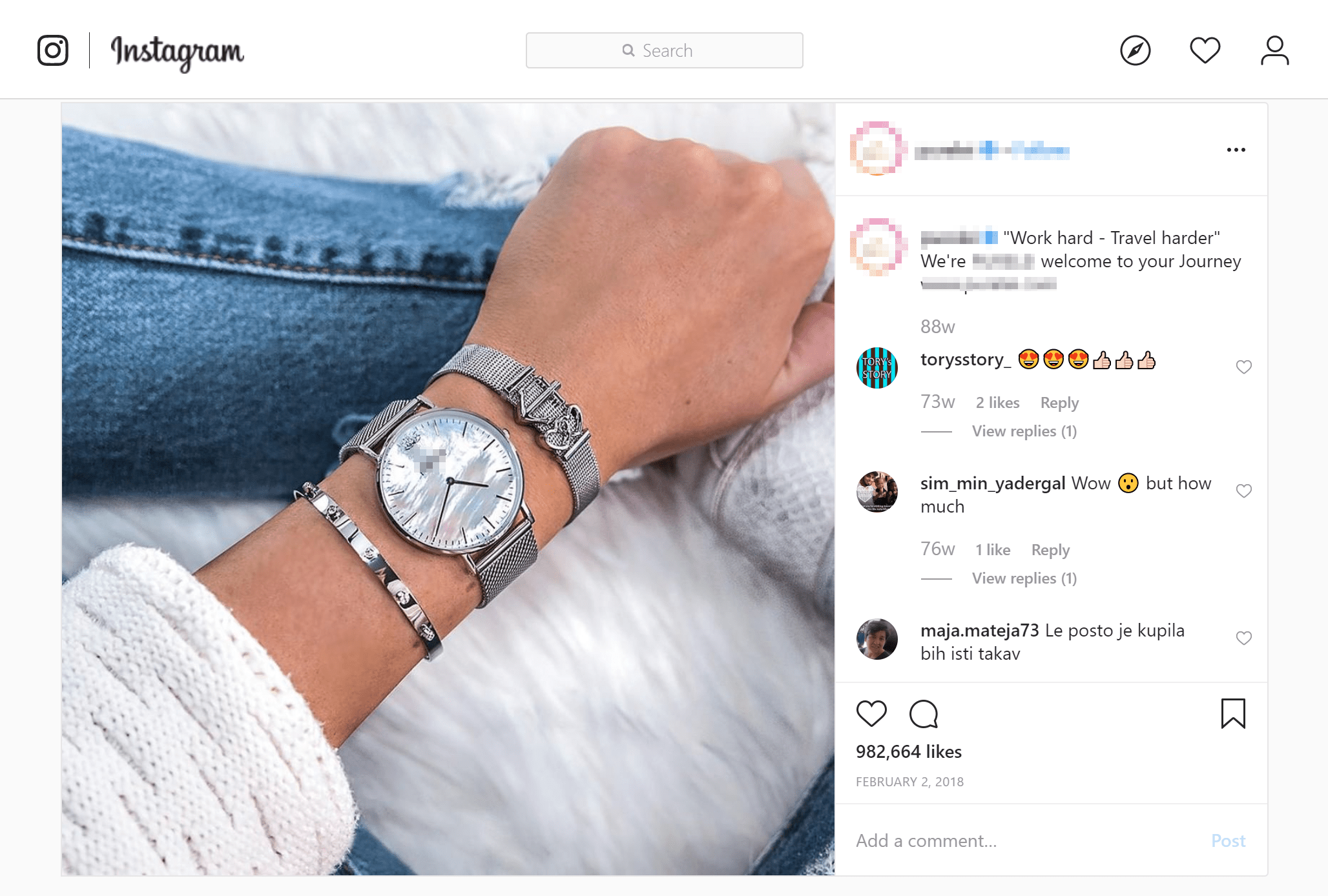 As you can see in the example above, using this technique for creating ads could be really efficient. This post catches the eye and allows customers to see the watches in detail. That’s why it’s got more than 600,000 likes.