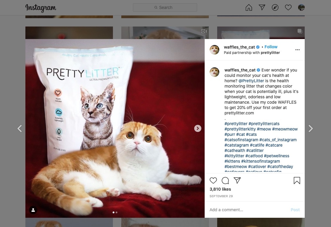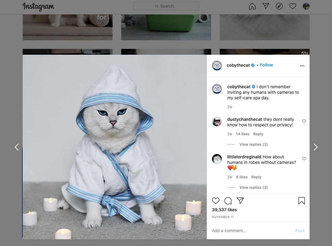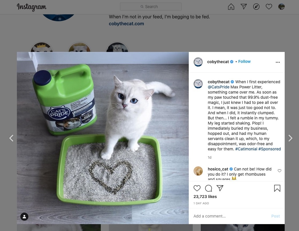 For example, here is a person who created an Instagram account for their cat. Over time, their audience had grown, and they started to place ads. So why not?