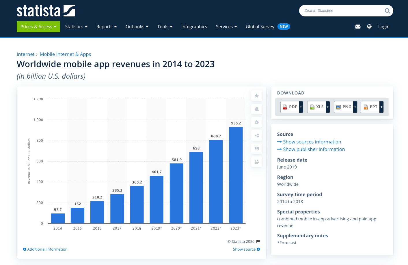 As you can see, it’s predicted that in 2023 mobile app revenues will amount to almost a trillion of US dollars. Sounds convincing, right?