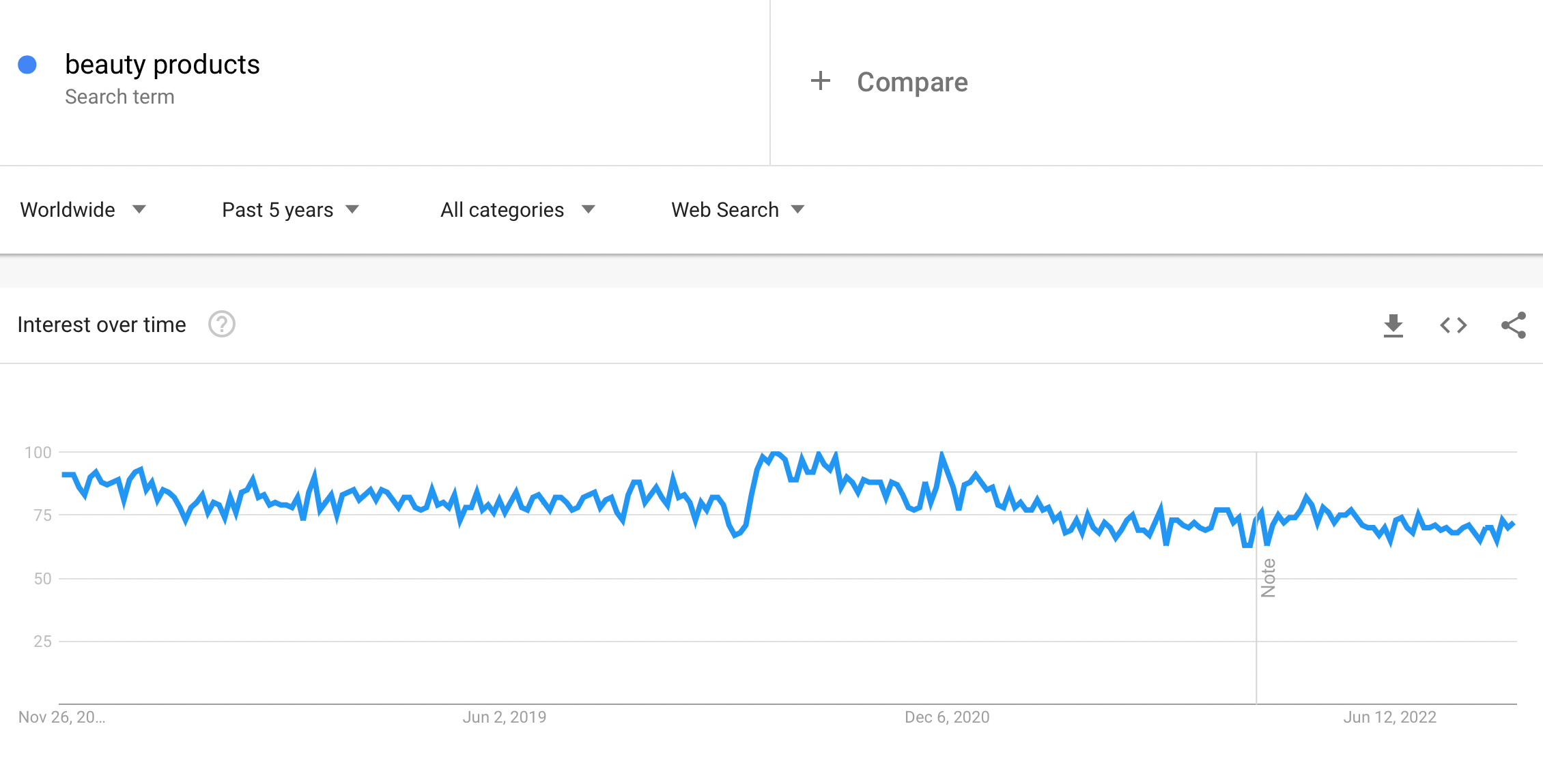 We think that it’s not necessary to talk about beauty products and their popularity. Just look at what Google Trends tells us about this.