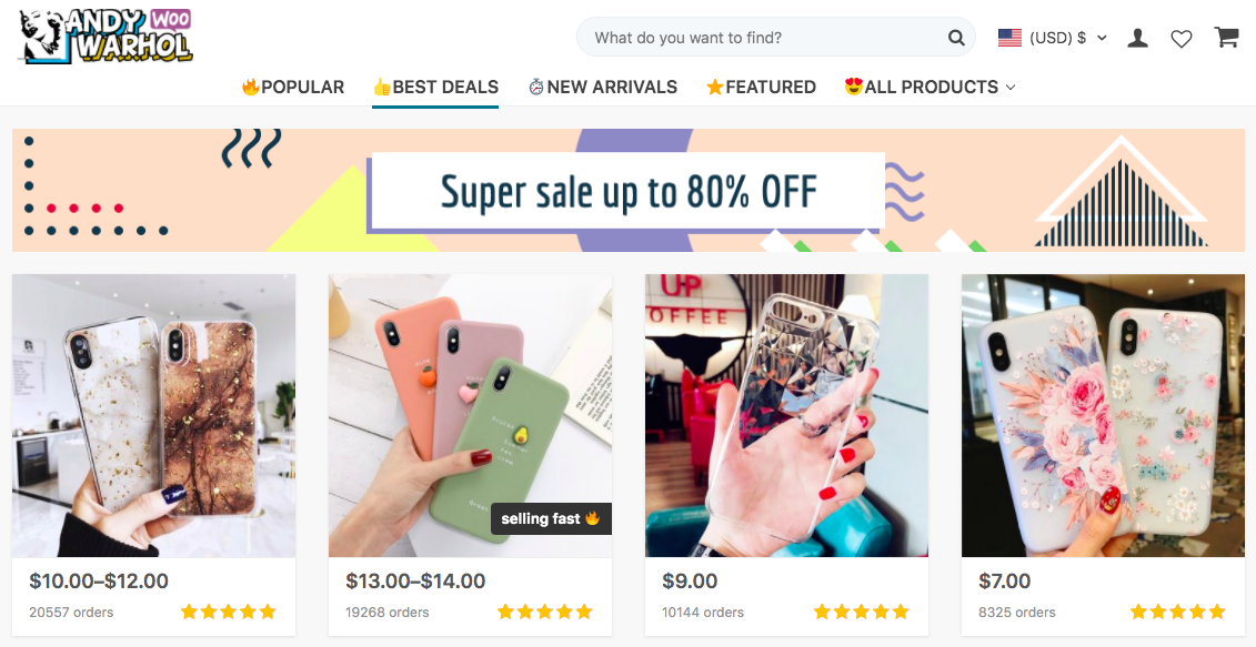 The Andy Warhol theme proved itself to be a huge success, which is why we were really excited to create its WooCommerce version, too! Here, you’ll find all the familiar features standing behind Andy’s selling power: catchy banners, FOMO badges, calls to actions, and more. We cover Andy Warhol Woo in more detail in this article, so make sure to take a look!