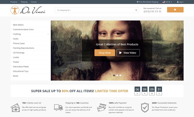 Da Vinci 2.0 for Woo is also a right decision for you if you want to create a website on WooCommerce. In this theme, you will find several product page layouts and product gallery options, buyer protection banners, and so on and so forth.