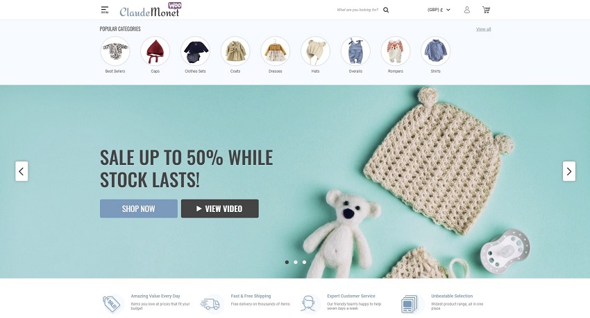 A striking thing about Claude Monet Woo is its app-like structure making it easy and comfortable for visitors to browse the store. Combining purchase-stimulating features with clean layout, Claude Monet allows even inexperienced online shoppers to navigate your website effortlessly. Interested to learn more about this customer-focused solution? Here is an in-depth review of the Claude Monet Woo theme from AliDropship!
