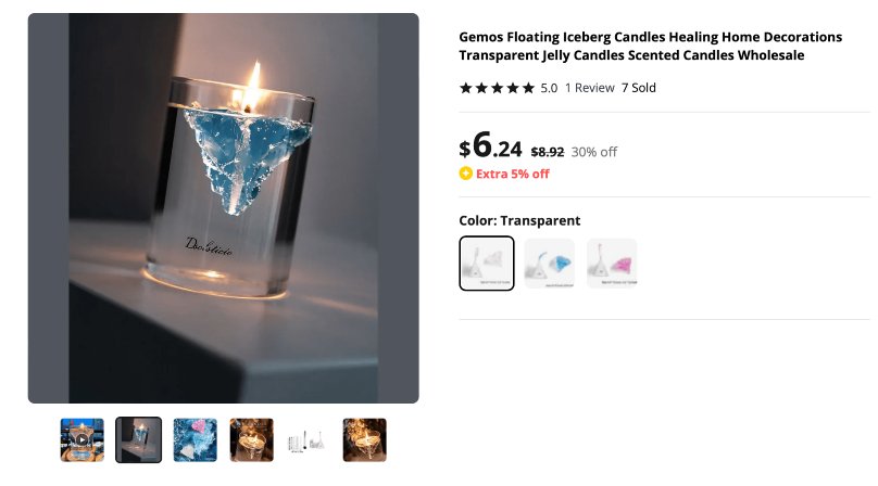 A glimpse at product examples for candle dropshipping