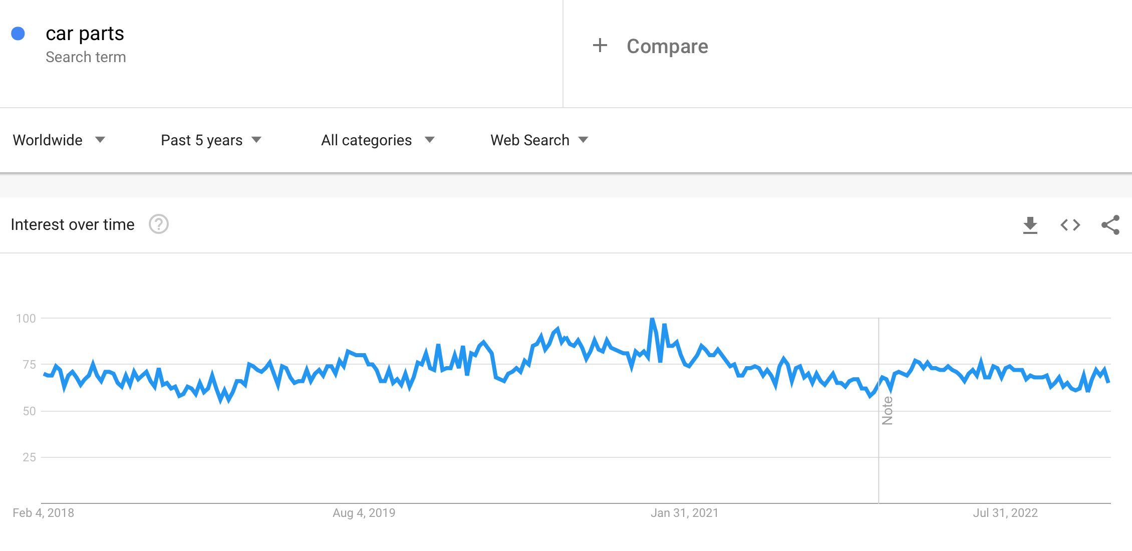 What do we need to consider a niche as profitable? First of all, it’s a demand. Let’s look at how popular the ‘car parts’ search request is on the Internet.