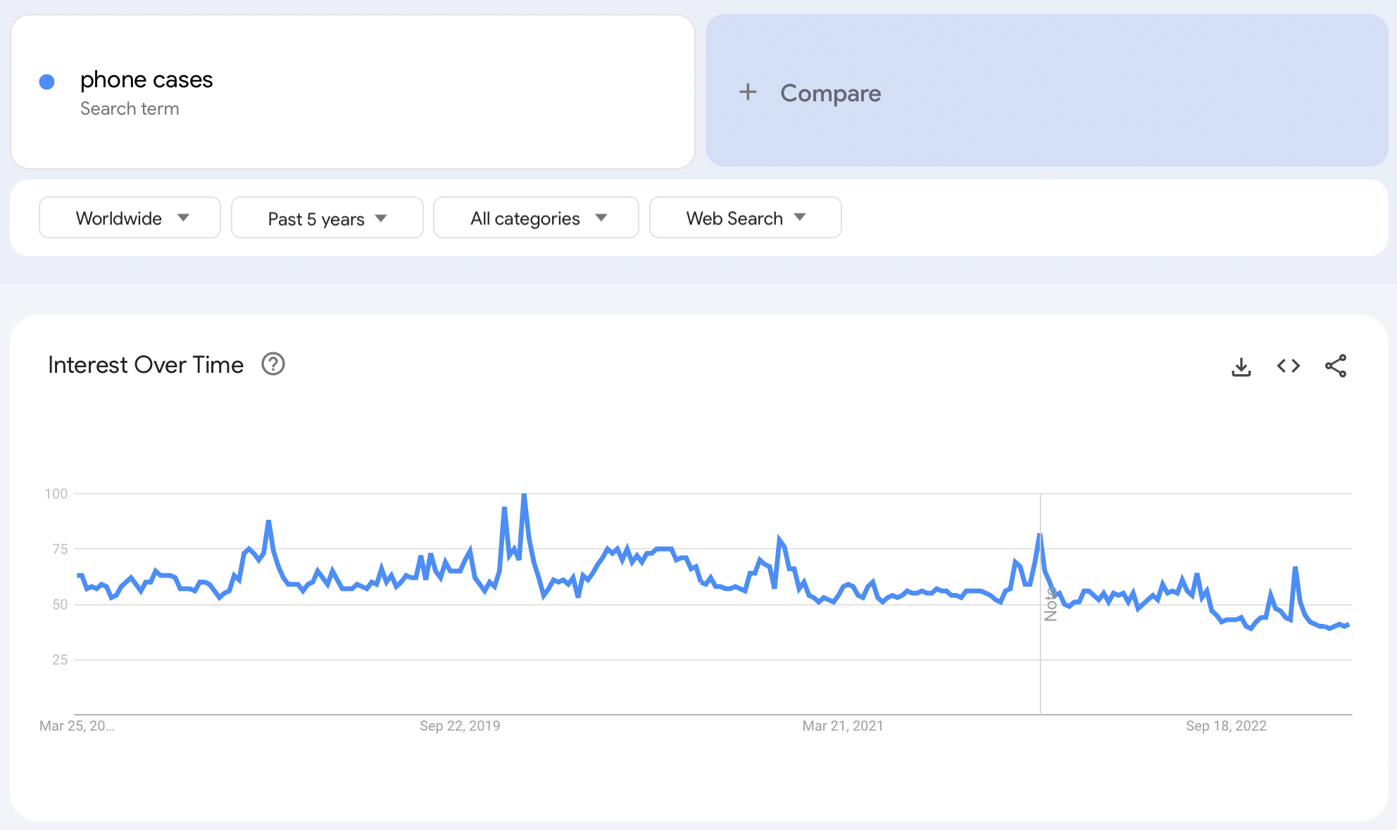 First of all, this is about the demand. In fact, the demand for cell phone cases is high enough. Are there any doubts about it? If so, let’s check Google Trends.