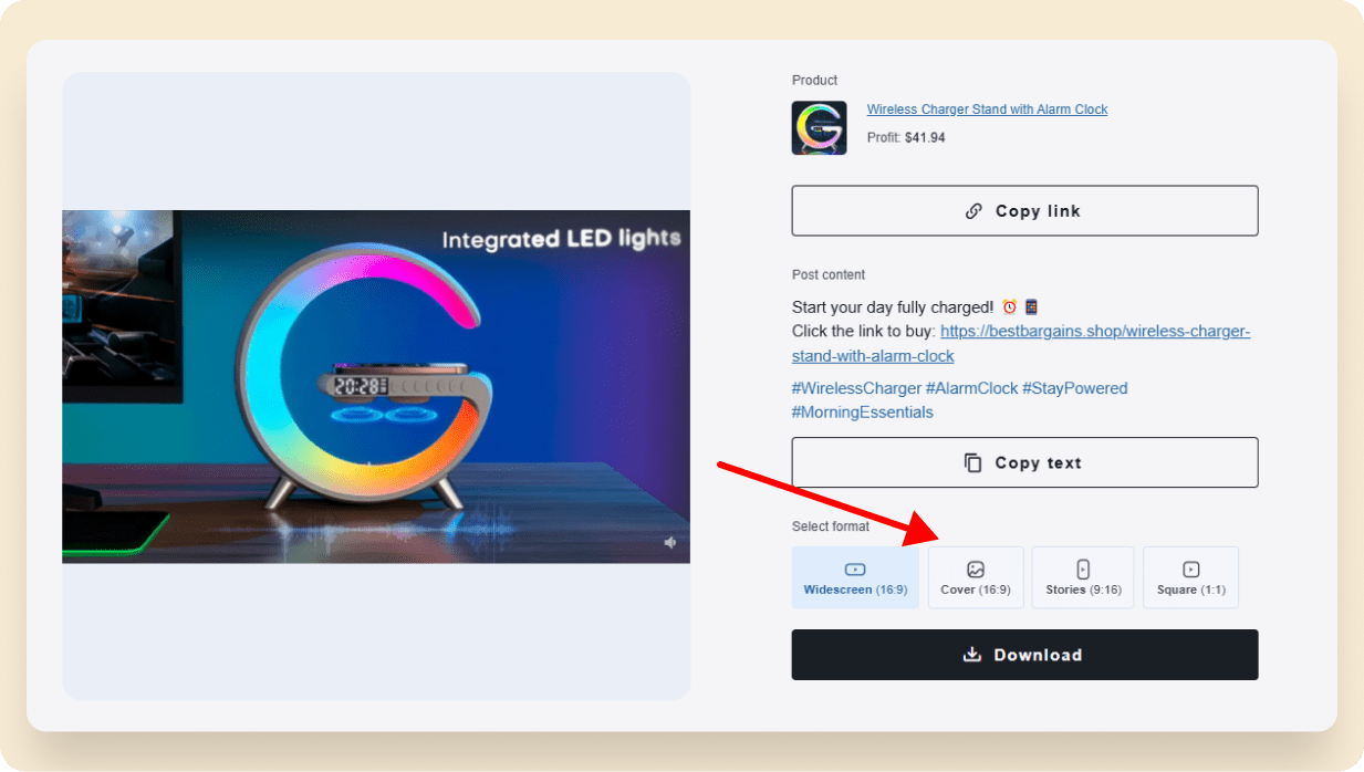 Our tool saves you precious time by providing professional videos, striking cover images, and captivating descriptions, all designed to make your channel shine and your products sell faster.