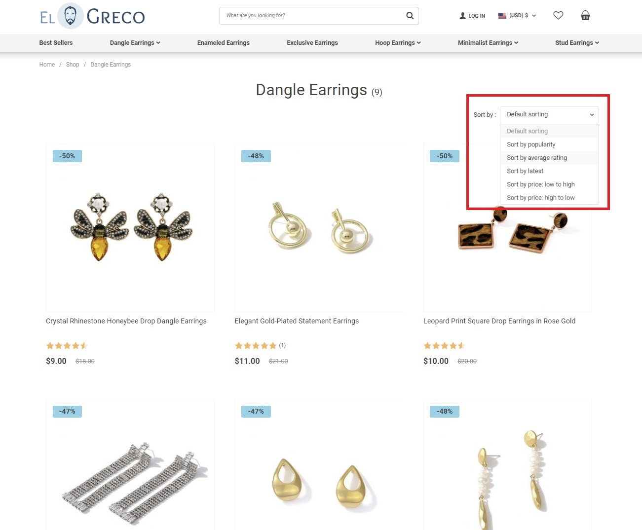The top bar provides you with the fully functioning menu which lets your store visitors switch between the categories of your online store. Moreover, each category provides them with an opportunity to sort items in accordance with particular parameters.