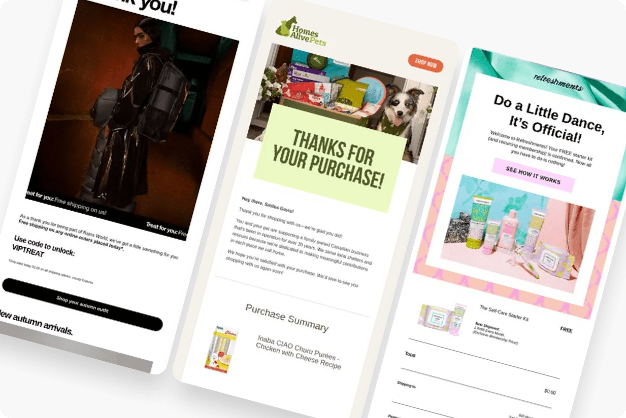 1. Welcome series: when a new customer signs up or makes their first purchase, send them a friendly welcome email (or a series of emails) to introduce your brand and products.