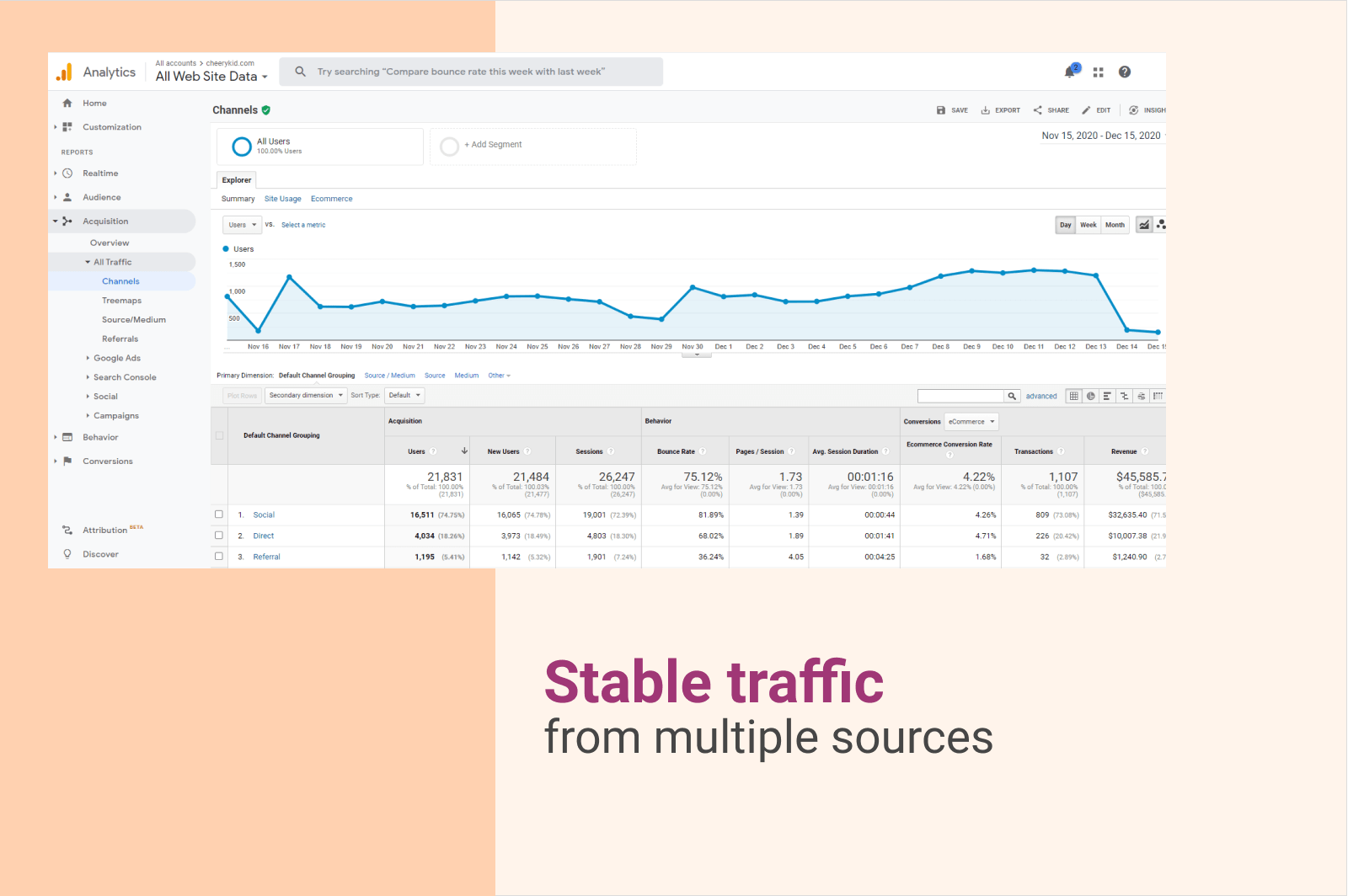 The website is ranked high on search engines. Besides, the store drives active direct traffic owing to a high-scale promotion campaign that was conducted before.