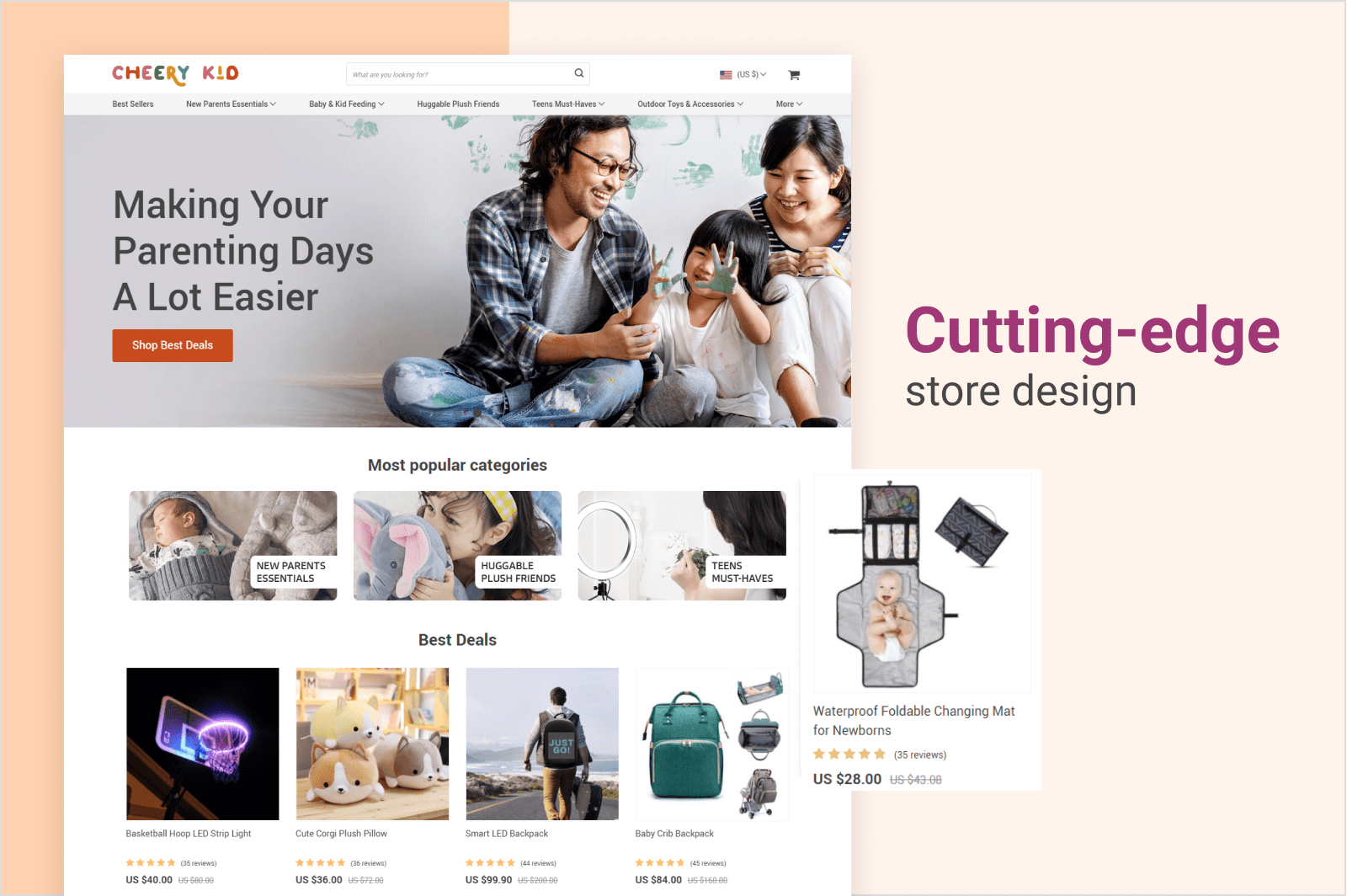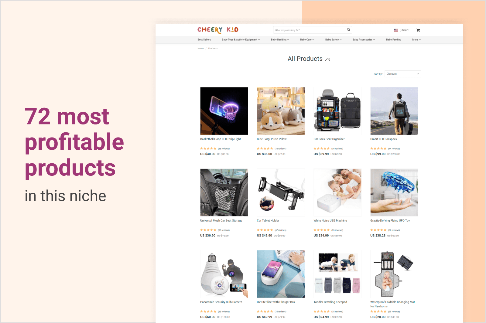 When you’ve got a baby on the way, there’s a lot to buy — from clothing to feeding gear to toys for the baby and new carrying gear and storage solutions for moms who are due — a lot of shopping will need to be done. Cheery Kid is our answer to all your maternity and baby needs in an easy-to-shop online store. We designed Cheery Kid to reflect the joy in having and raising a newborn, and we stocked our store full of high-selling, popular baby accessories, clothing, and make-your-life easier solutions for moms. And we’ve been pretty successful, making $49,000 a month with over 21,000 monthly site shoppers. Those numbers mean great potential for you for an easy startup business that rakes you in big bucks from day one; speak with our sales team to see how you can become the owner of Cheery Kid today.