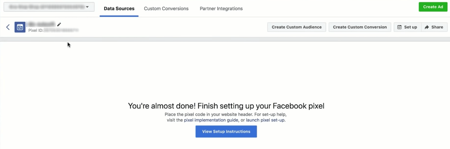 Once you’re done, you’ll find your Pixel ID. Go to your website settings and add it to your web platform or CMS. The Pixel ID goes into the header of your website in the header template.