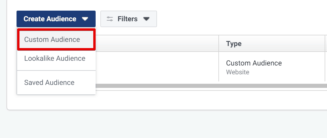 Choose the “Custom audience” option in the “Create Audience” menu.