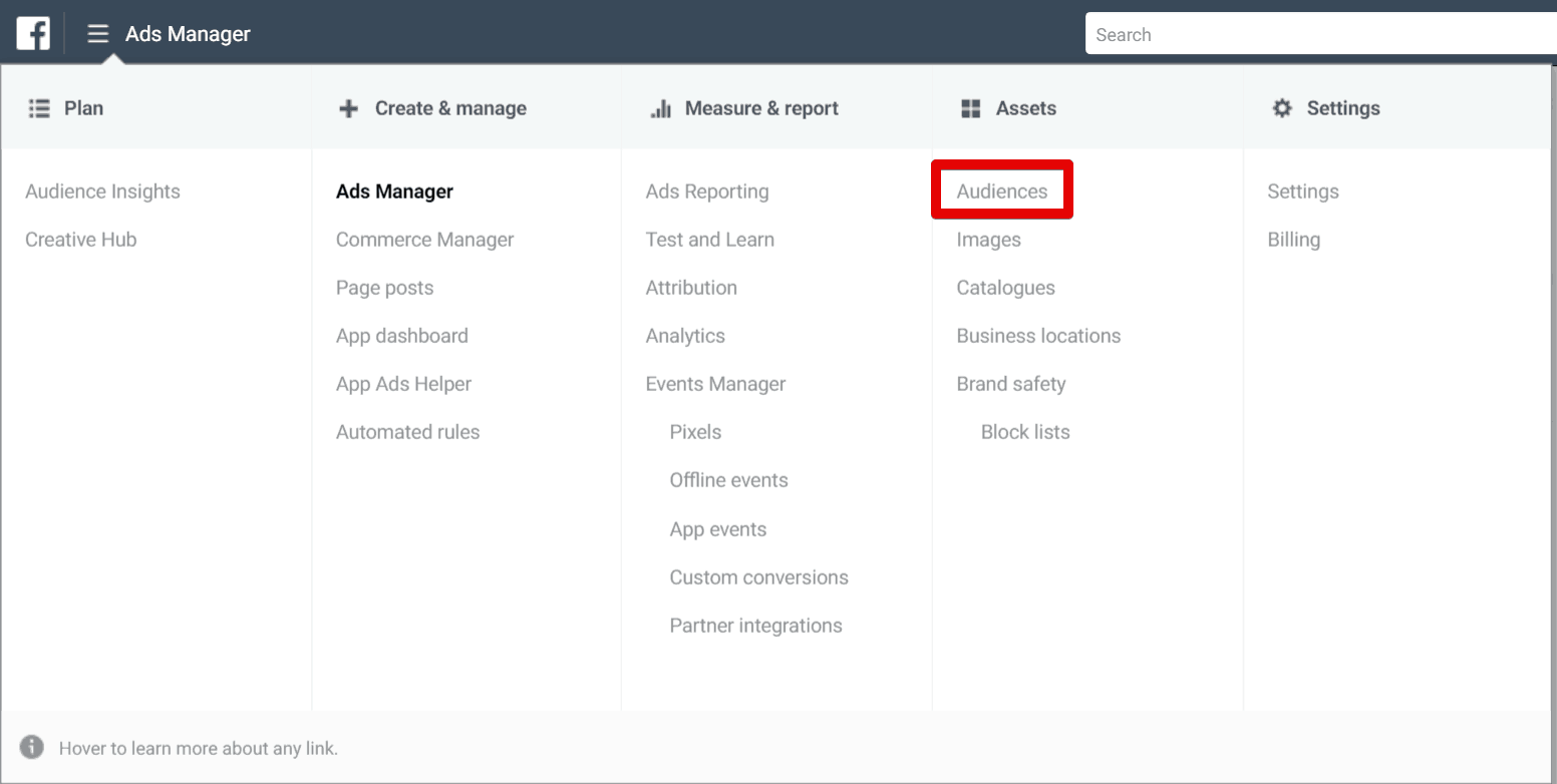 For this, you just need to click on “Audiences” tab in your Ads Manager and