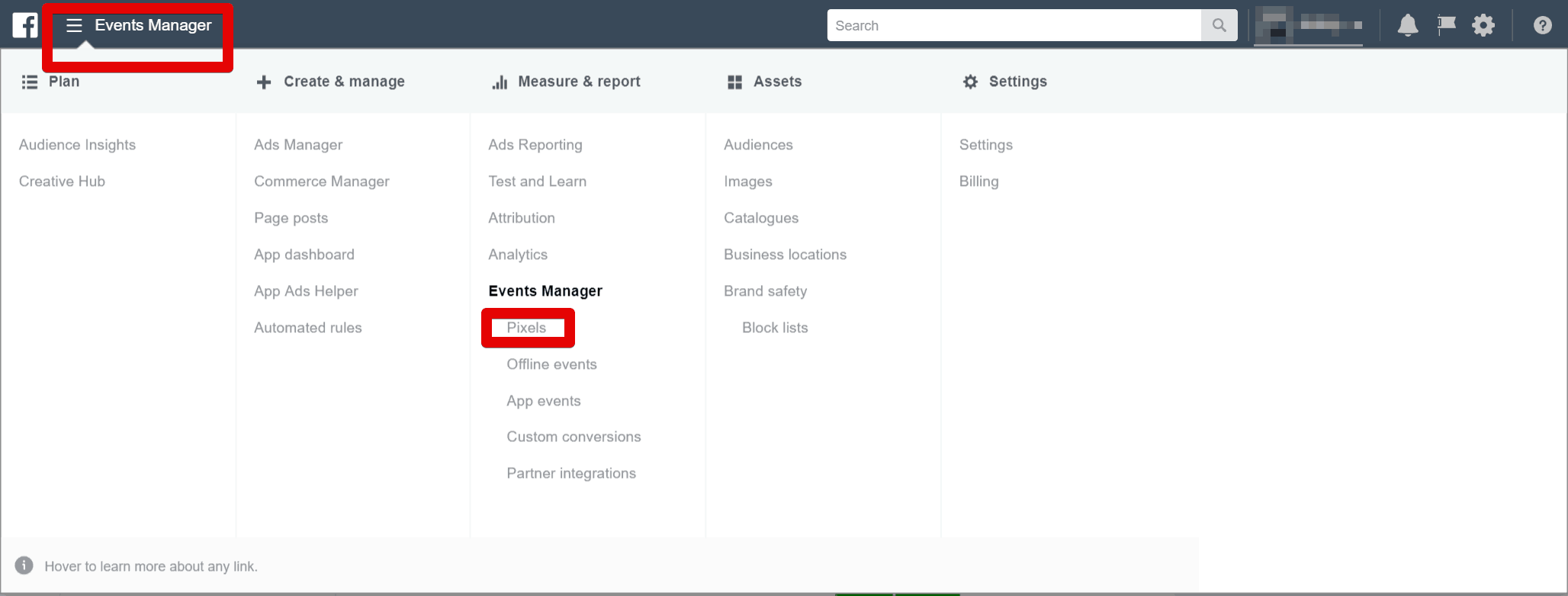 To set up the pixel, you need to go to Events manager and choose the “Pixels” tab. Then, you should think of a name for your pixel and click on “Create a pixel”.