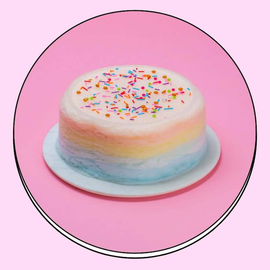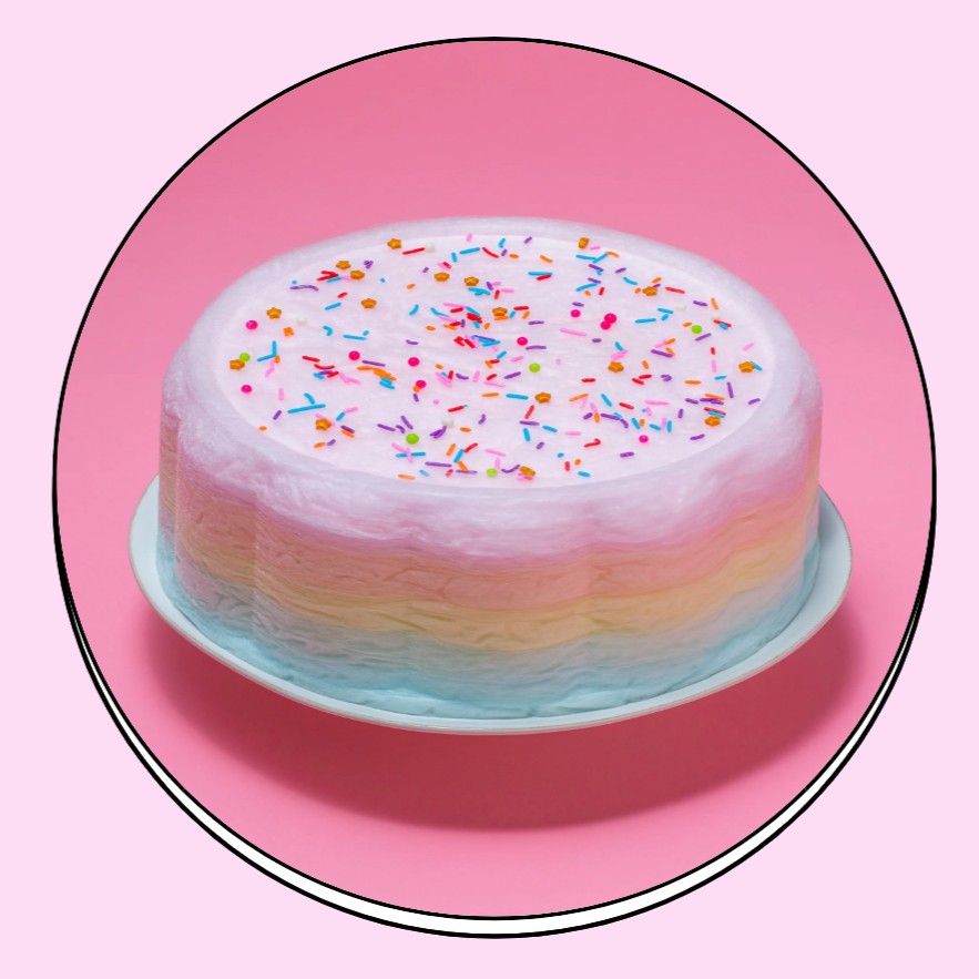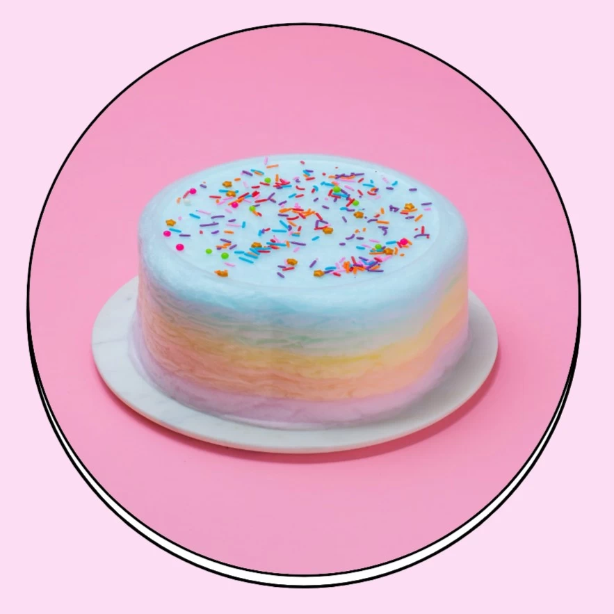 @floof.cottoncandy I get a lot of questions about how many people our Floof cake serves!🌈 10-12 slices depending on the size. My daughter doesn’t even like #cottoncandy but her mama owns Floof so it’s illegal to not bring a floofcake. #cottoncandycake #rainbowparty #rainbowcake #glutenfreecake #allergyfriendly #vegan