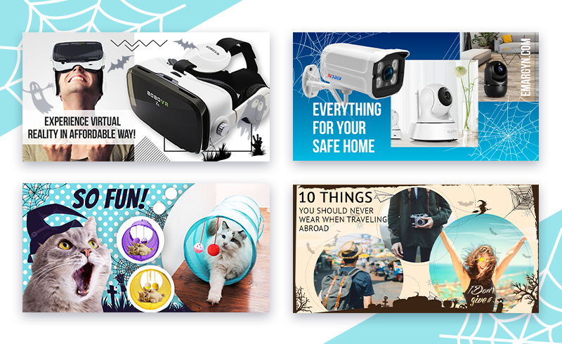 - It’s not necessary to sell only Halloween-themed goods. This bundle doesn’t require a particular product range. So, you’re not supposed to give up selling smartphones and put some Halloween masks and other Halloween-related products on sale. What is necessary for you during the pre-Halloween season is to make ads in the Halloween style. That’s it, a genuine interest in your store is ensured!