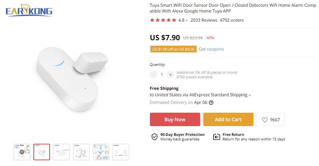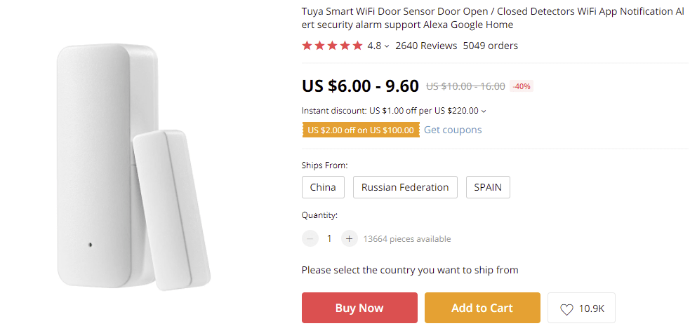 AliExpress also has different types of alarms and sensors that are supported by various smart home devices. All you have to do is connect via Wi-Fi or Bluetooth.